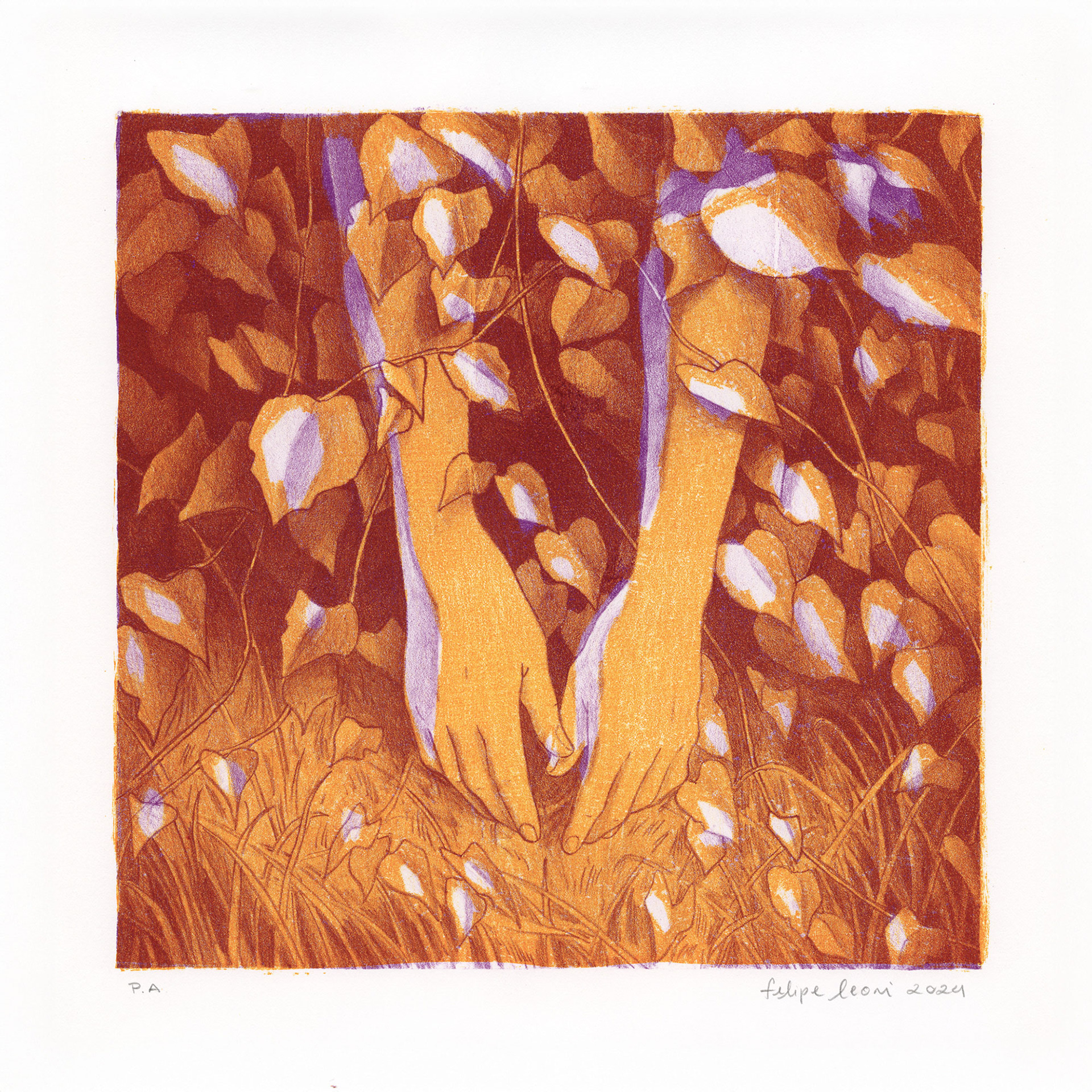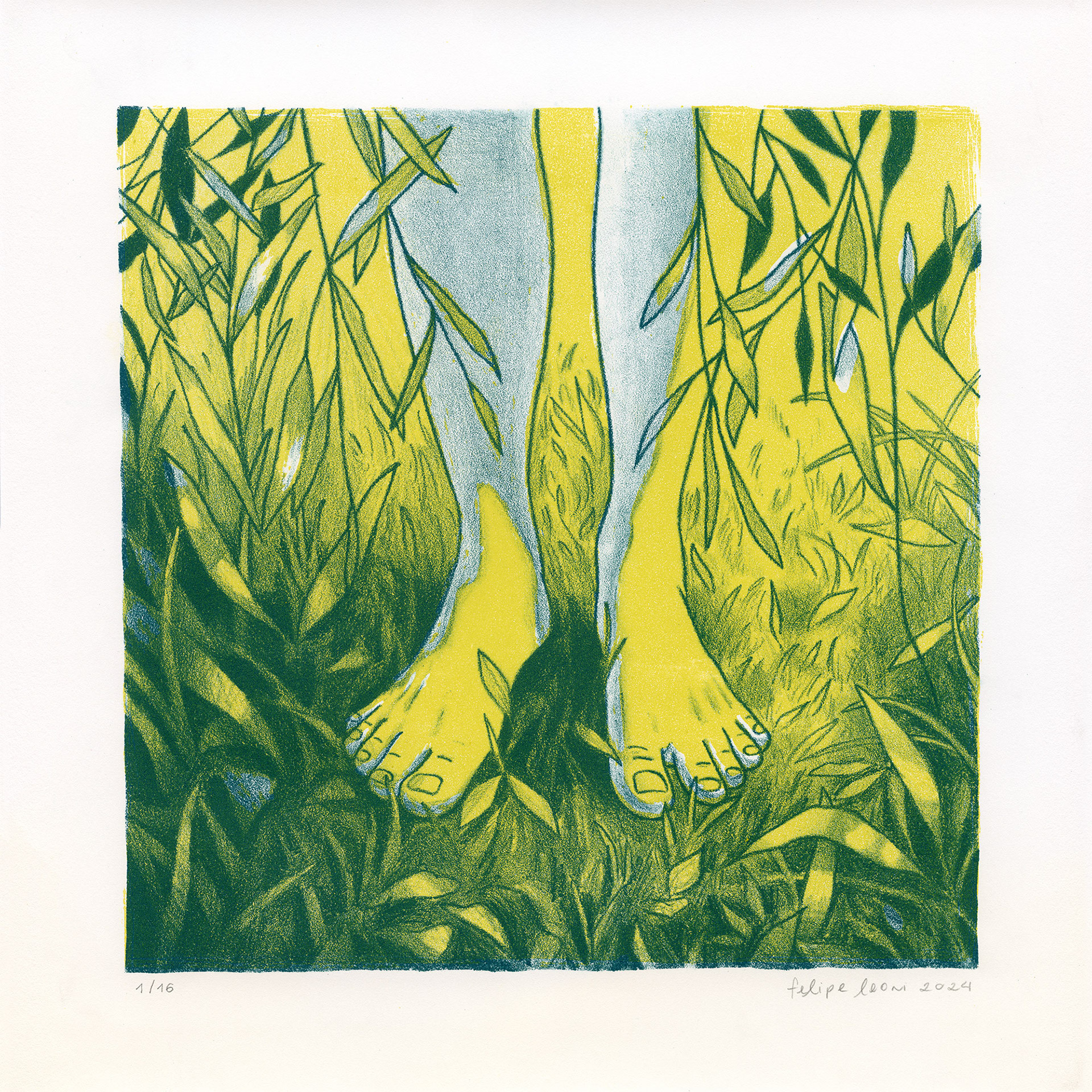 Lithography print of two drawings I did directly on stone with lithographic pencil. Both printed manually with two colors over 100% cotton paper by Arjowiggins. There is an in depth video of the making off the print below.