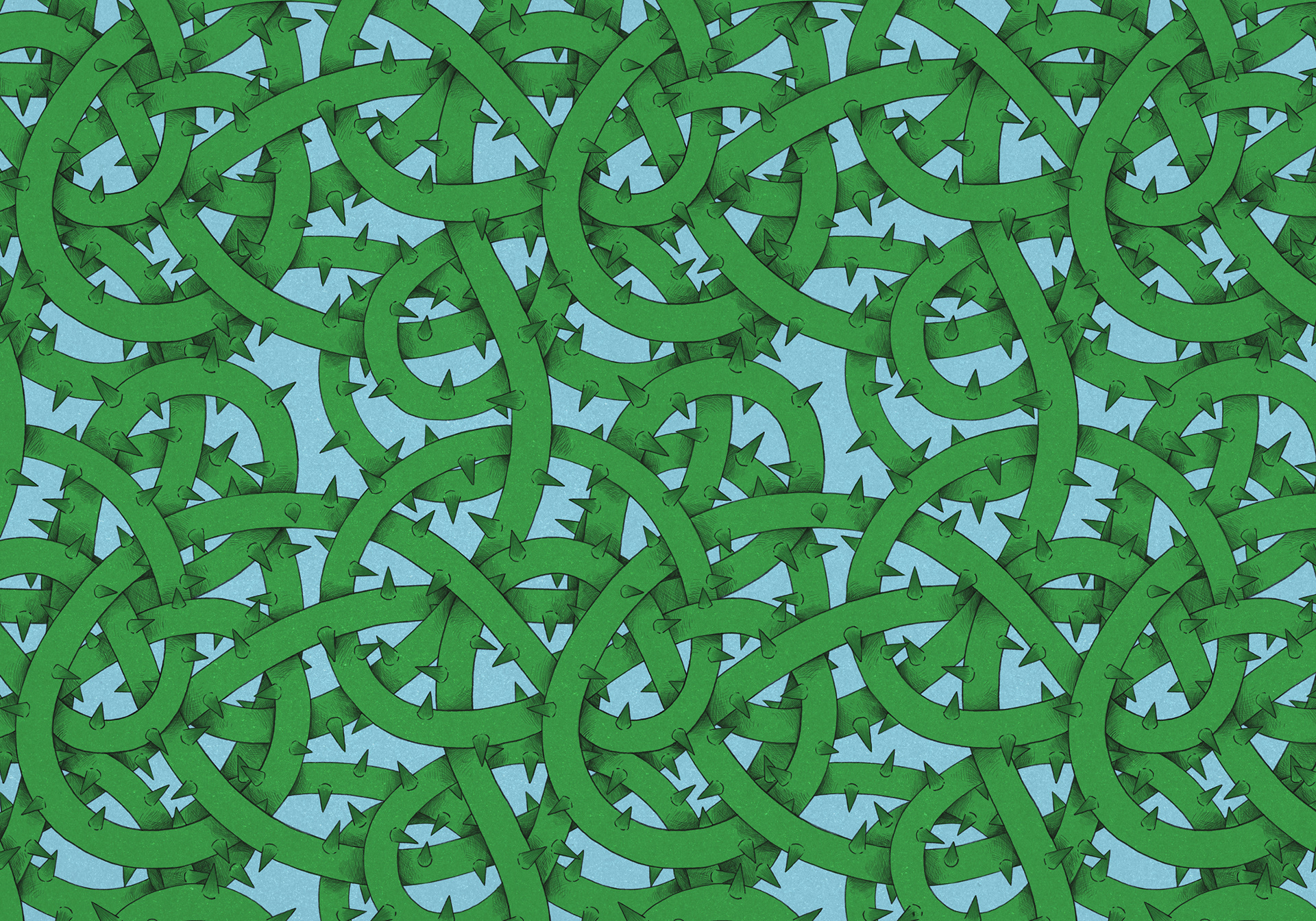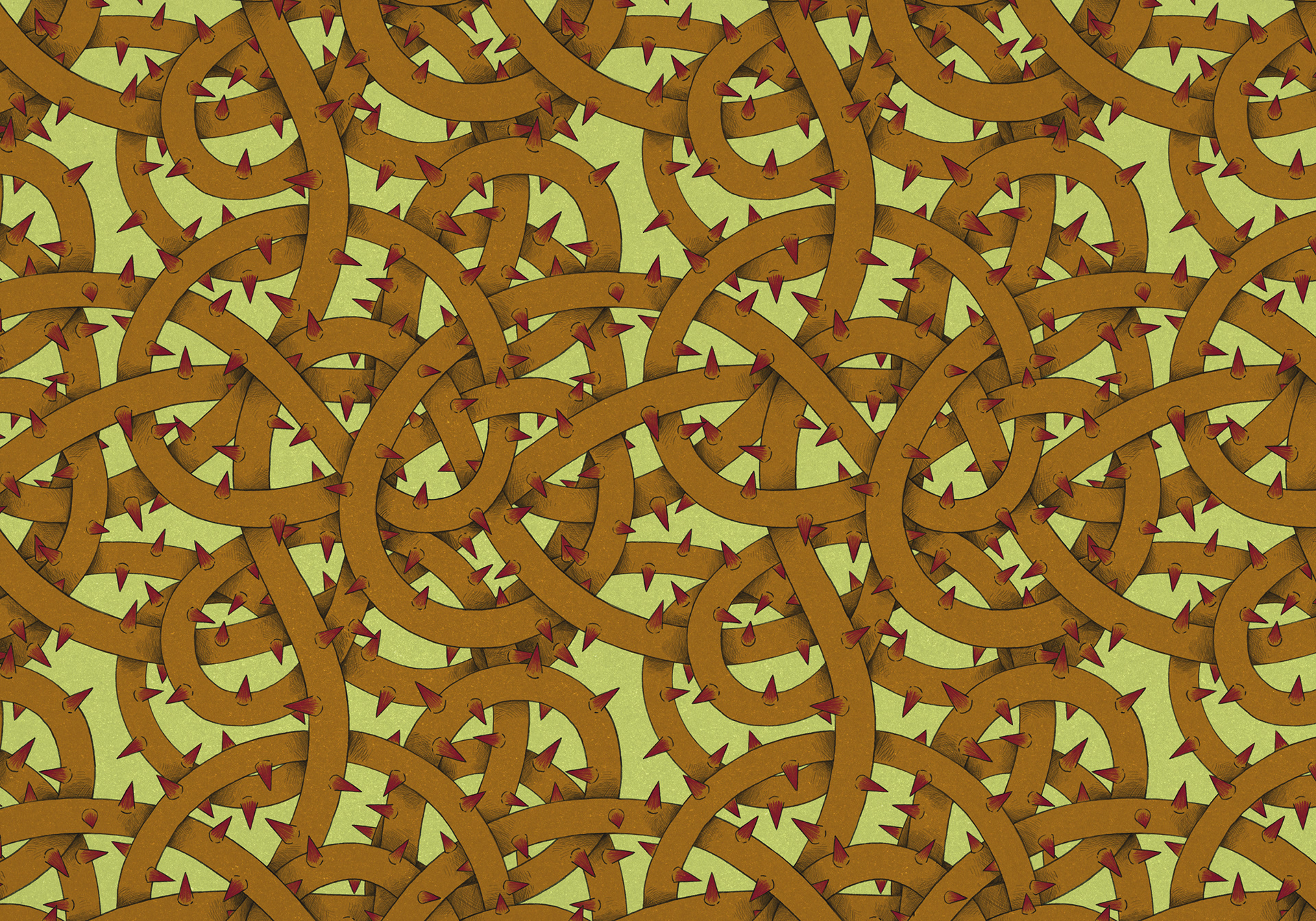 I thought prickly vines would be a huge problem in my adult life. Well, they weren't, but here's an homage to them. I made a pattern with three color variations.